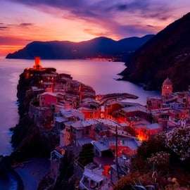 En naviguant vers l’est, on rencontre Vernazza, peut-être le plus emblématique des villages. Son petit port naturel, dominé par le château Doria, témoigne de l'importance stratégique du village au Moyen Âge en tant qu'avant-poste maritime de la République de Gênes. Au coucher du soleil, les maisons colorées semblent se refléter dans l'eau, créant un tableau intemporel.