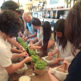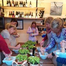 Discover the time-honored method of crafting pesto using a marble mortar and pestle, just as generations of Ligurian cooks have done. As you grind and blend, you'll uncover fascinating tales and insights into the region's rich culinary heritage. Finally, savor the fruits of your labor! Gather with loved ones and relish the delicious pesto you've created, a true taste of Italy.