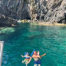 The tour includes two stops for swimming in the sea, during which a mask and snorkel will be provided. On board, you'll find comforts like a toilet, shower, minibar, and music, plus inflatable water games for everyone's enjoyment. Soft drinks, beer, prosecco, and snacks are included to make the experience even more enjoyable. The duration and availability of the tour always depend on the weather conditions, to ensure maximum safety.