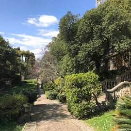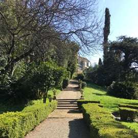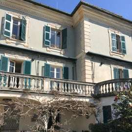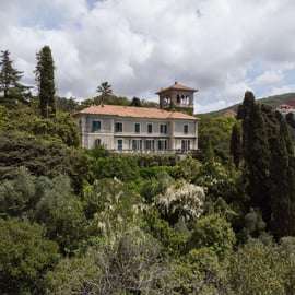 С террас дома открывается исключительный вид на залив Поэтов, который простирается от Леричи до Портовенере и с XIX века покорил сердца множества писателей и художников, от Шелли и Байрона до Лоуренса. Не менее примечательным является и английский сад: длинная беседка из глицинии пересекает его, отделяя рощи и возделываемые участки – розарий, огород и фруктовый сад – от монументального газона, пересекаемого аллеей для прогулок, окаймленной живой изгородью с цветочными вазами и украшенной бассейнами и фонтанами. Благодаря тщательной организации ботанических работ, сложной системе водоснабжения и наличию специальных зданий, растения для сада и срезанные цветы создаются и выращиваются непосредственно на месте. Многочисленные и разнообразные виды деревьев затеняют парк, редкие и ценные, такие как камфорные и магнолиевые деревья, а также кипарисы, оливковые деревья и лес из каменных дубов, который простирается на террасах, спускающихся почти к морю.